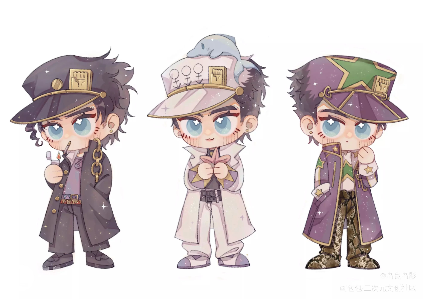 Q版jojo萌到出血 乔瑟夫用围巾 承太郎用帽子 乔鲁诺却用它 Q版 艾莉娜 乔纳森 乔瑟夫 乔鲁诺 承太郎
